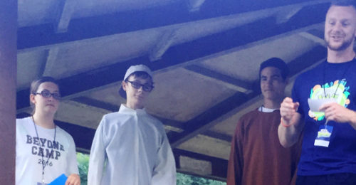 Jared: During craft time, the kids used Gospel beads and string to make a cross explaining the Gospel. Each colored bead represented a different stage. The cross starts with a black bead on top, which stands for sin. Following the black bead is a row with a red one for Jesus’ blood, a white bead for Jesus cleansing us, and a yellow bead for eternal life in Heaven. The bottom of the cross has a blue bead, standing for baptism and a green bead for growth in Christ. The kids really enjoyed this activity and were able to take it home with them to remember all God has done.