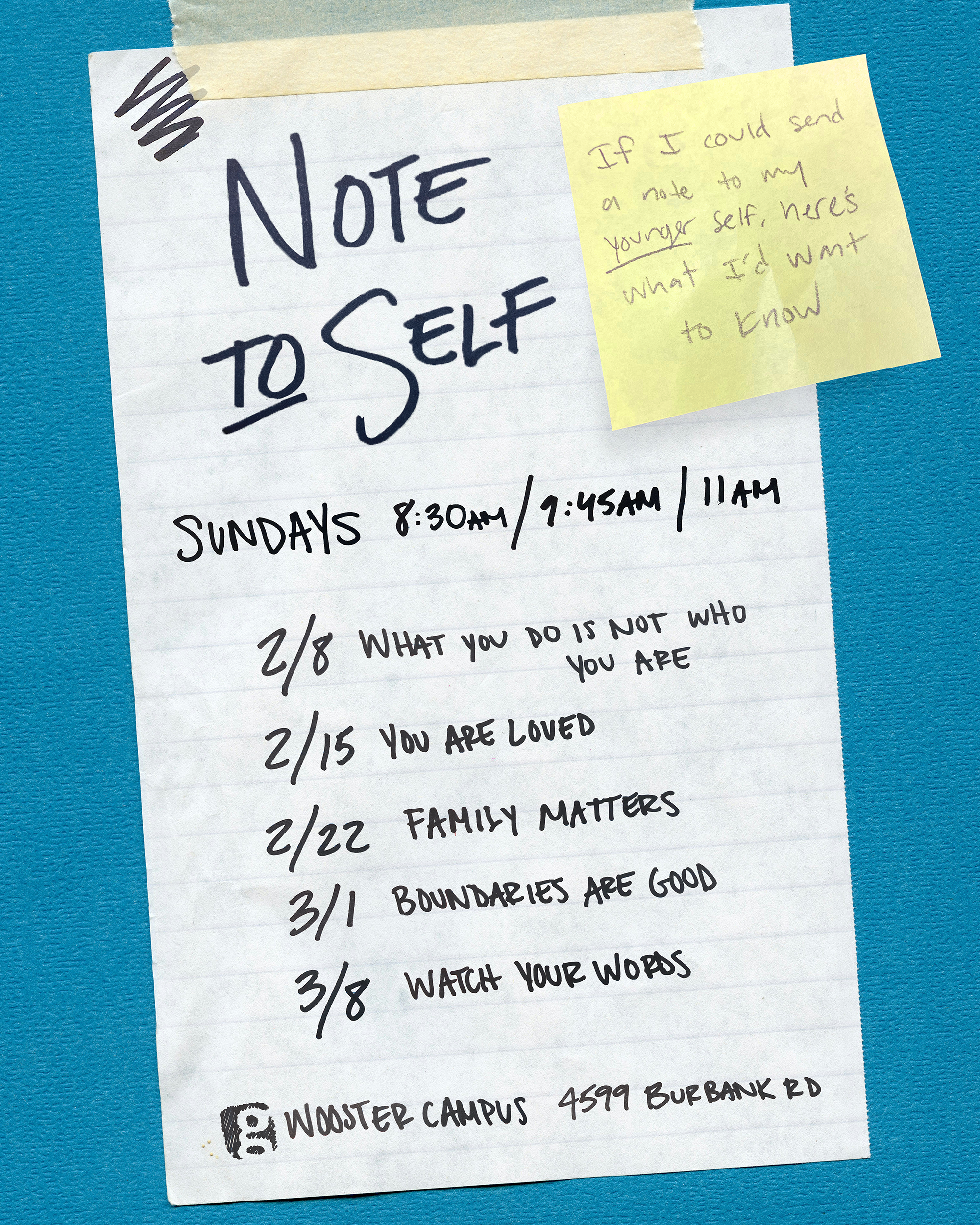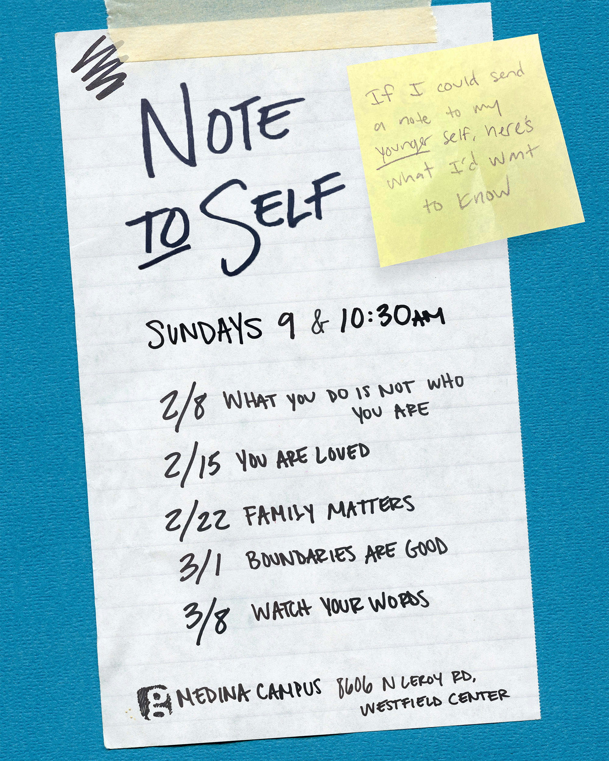 Challenge: Think of 1 person you could invite to church this Sunday for our new series: Note to Self.